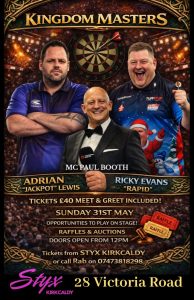 The next Darts Exhibition at Styx will be with 2 x World Champion, Adrian Lewis and the ever popular Rapid Ricky Evans.